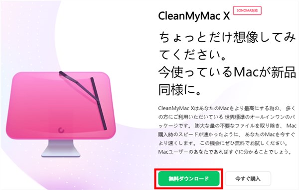 もしアカウント新規登録を避けて、すぐにMacにソフトをダウンロードしたい場合、以下のボタンから公式ページにアクセスして、製品をダウンロードしてみましょう。ただし、以上の3つの条件を満たしないと、CleanMyMac(X)の無料トライアル版をダウンロードしても、無料スキャンしかできません。