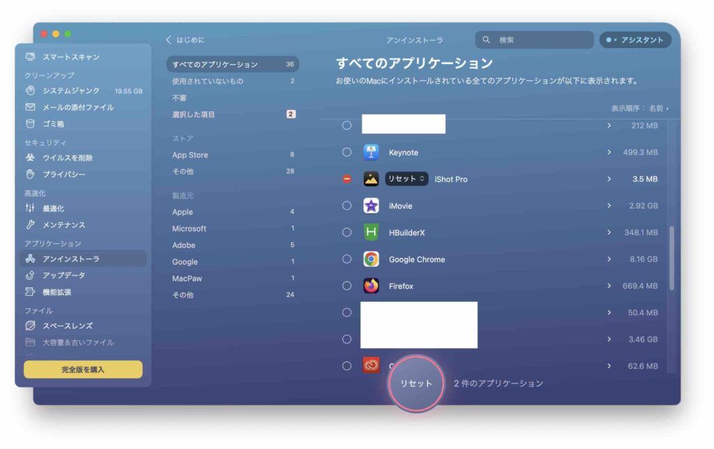 CleanMyMac Xの使い方 – アプリのアンインストール