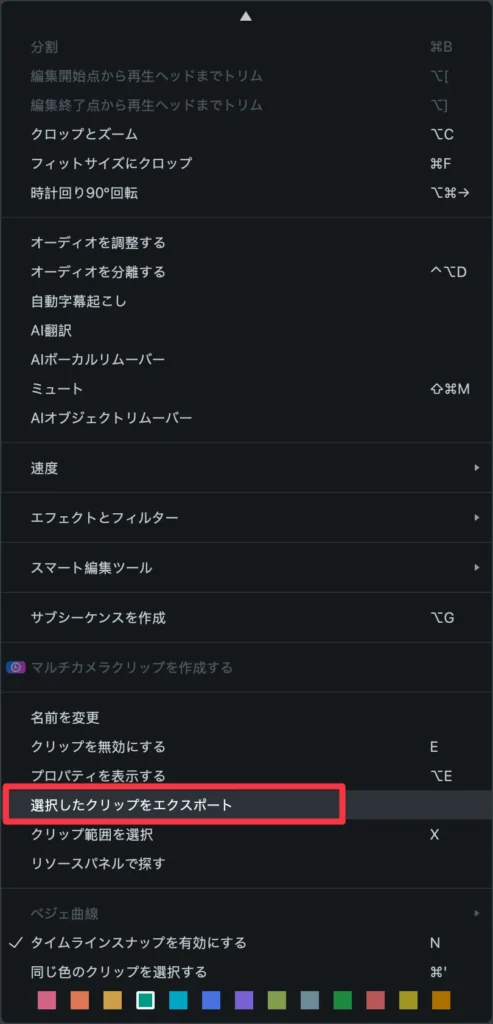 はい、トリミング機能を使えば、必要な部分だけを切り取って、出力したい部分の動画を選択して右クリックします。そして、ポップアップされたメニューから「選択したクリップをエクスポート」を選択すると、動画の一部を出力することができます。