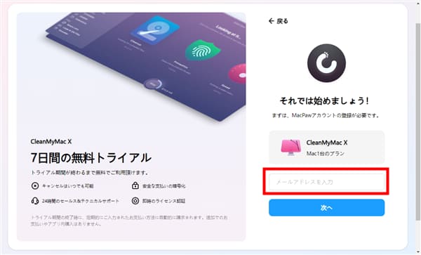 上記はCleanMyMac X無料版の主な機能や有料版との違いを紹介しますが、どのようにCleanMyMac X無料版をダウンロードしてインストールできますか?また、無料トライアルの申し込み方法は何ですか?ここで、CleanMyMac X無料版のインストールと無料トライアルの申し込み方法をまとめて紹介します。