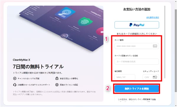 Step 5: お支払い情報と方法を追加して、「無料トライアルを開始」ボタンをクリックします。