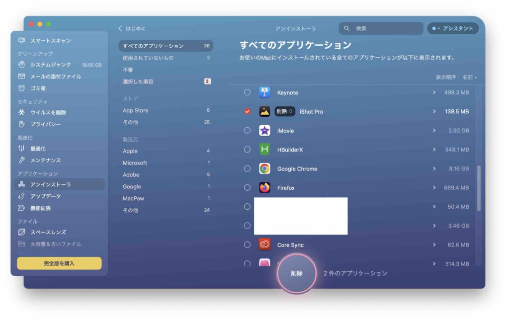 CleanMyMac Xの使い方 – アプリのアンインストール