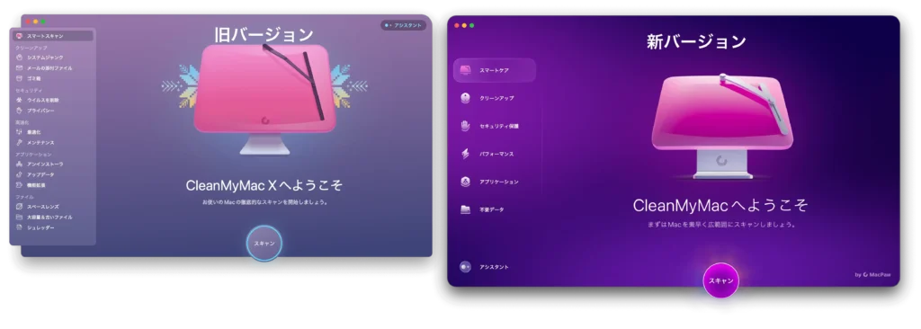 2024年10月にCleanMyMacは新しいバージョンをリリースしました。このアップデートでは、新機能の追加やインターフェースの改善が行われています。この2つのバージョンの違いは以下の通りです。