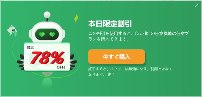 【最大 78% OFF】インストール済ユーザー限定!DroidKitのプロモーションコード情報
