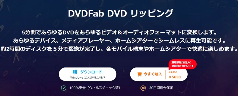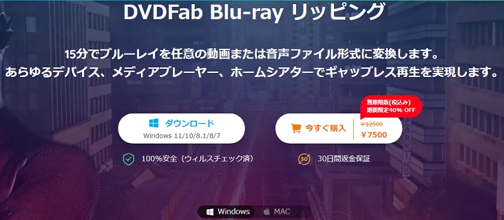 DVDFab Blu-ray リッピング無期限版は40%割引