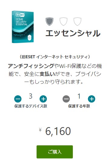 ESET セキュリティソフトプレミアムプランは三つのデバイスを1年間に保護することができます。値段は¥6160だけです。たまに、ESETクーポンを併用したら、さらに安いです。