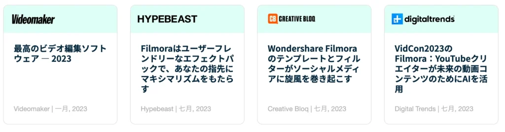 Wondershare Filmoraは、Videomaker、Hypebeast、Creative Bloq、digitaltrendsなど、有名なメディアでも高く評価されています。