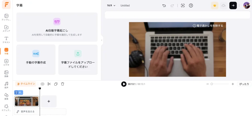 アカウントを登録・ログインしたら、 自動的にFlexClipの編集画面を開きます。