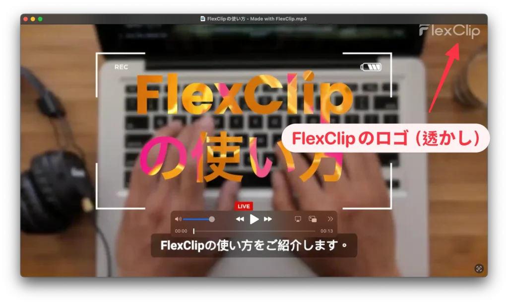 - 動画にFlexClipの透かし(ロゴ)が表示される