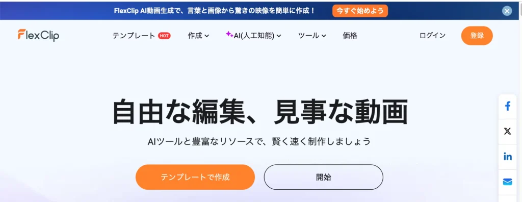 FlexClipは、インストール不要で、オンラインで動画を作成・編集できるツールとして人気があります。使いこなせるシンプルな操作性と、豊富なテンプレートが魅力で、初心者におすすめです。
