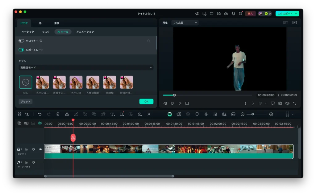 FilmoraのAI機能で人物だけを切り抜く方法