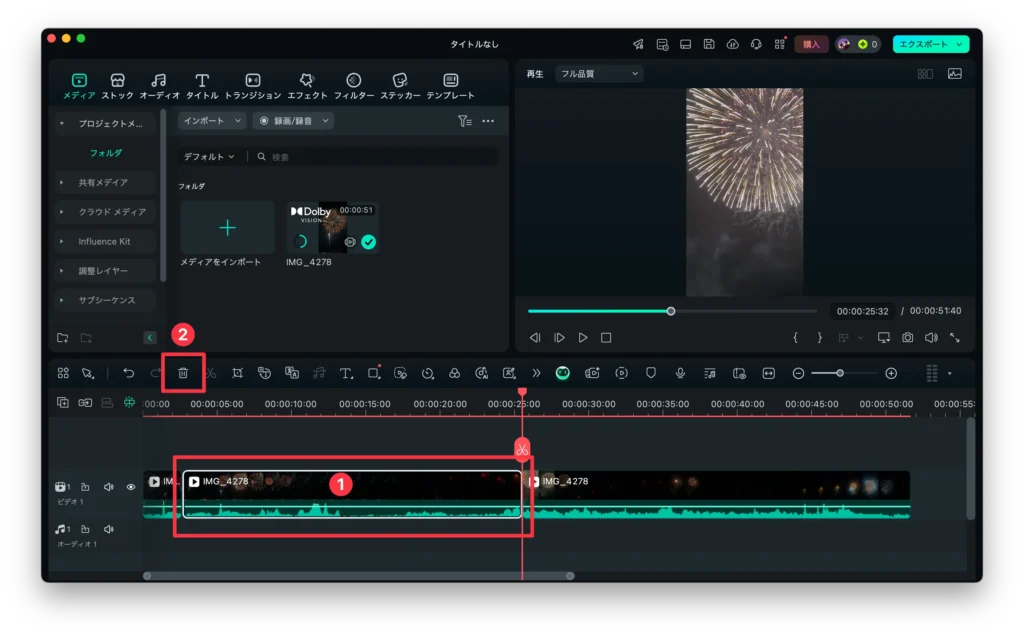 Filmoraで動画(画像)をトリミングする方法
