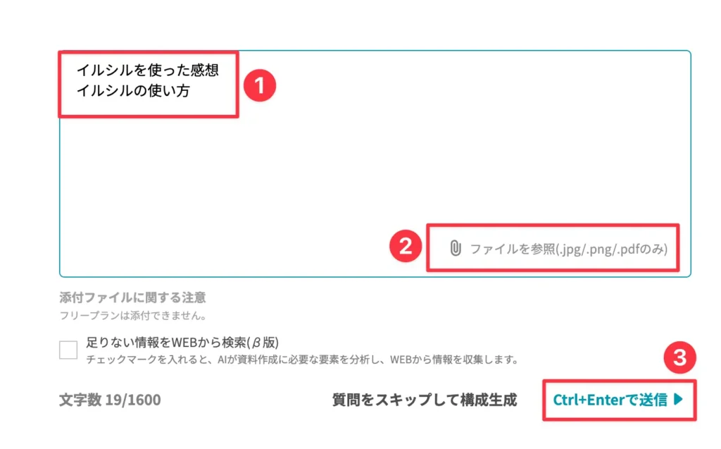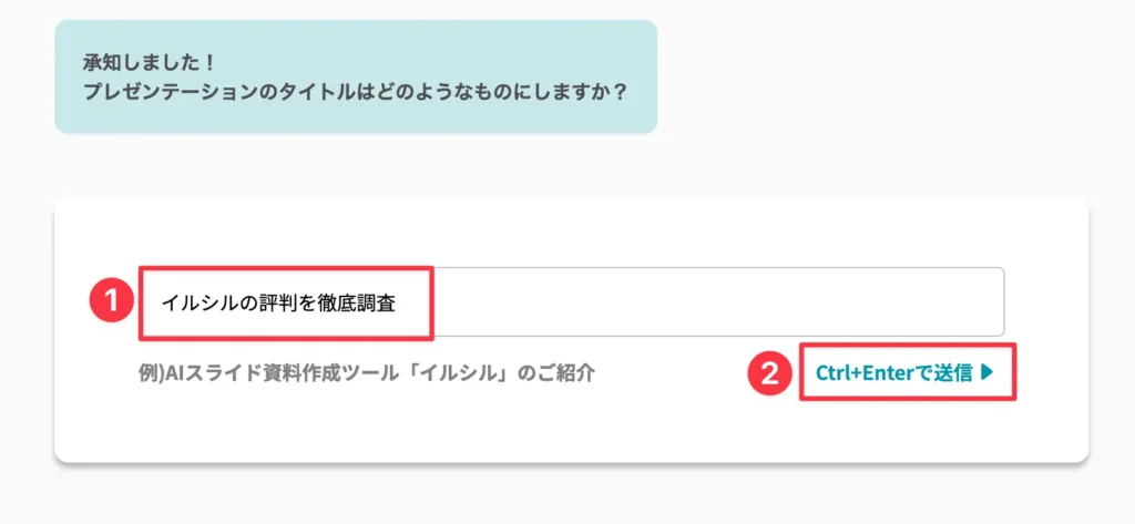 ステップ5. 次は、生成したいスライドのタイトルを入力して、「Ctrl+Enterで送信」をクリックします。