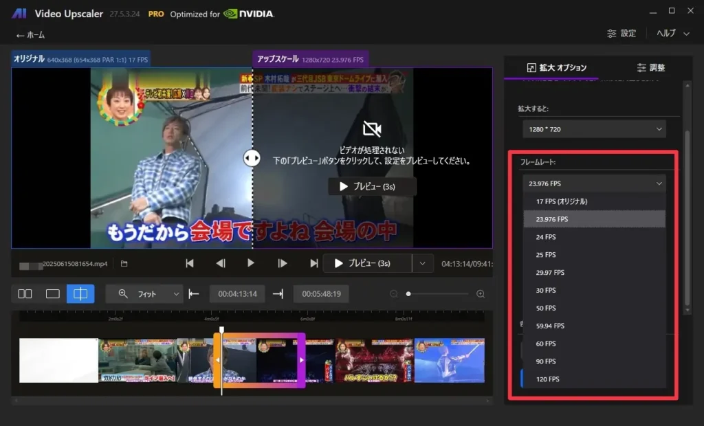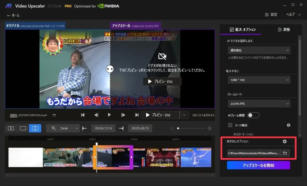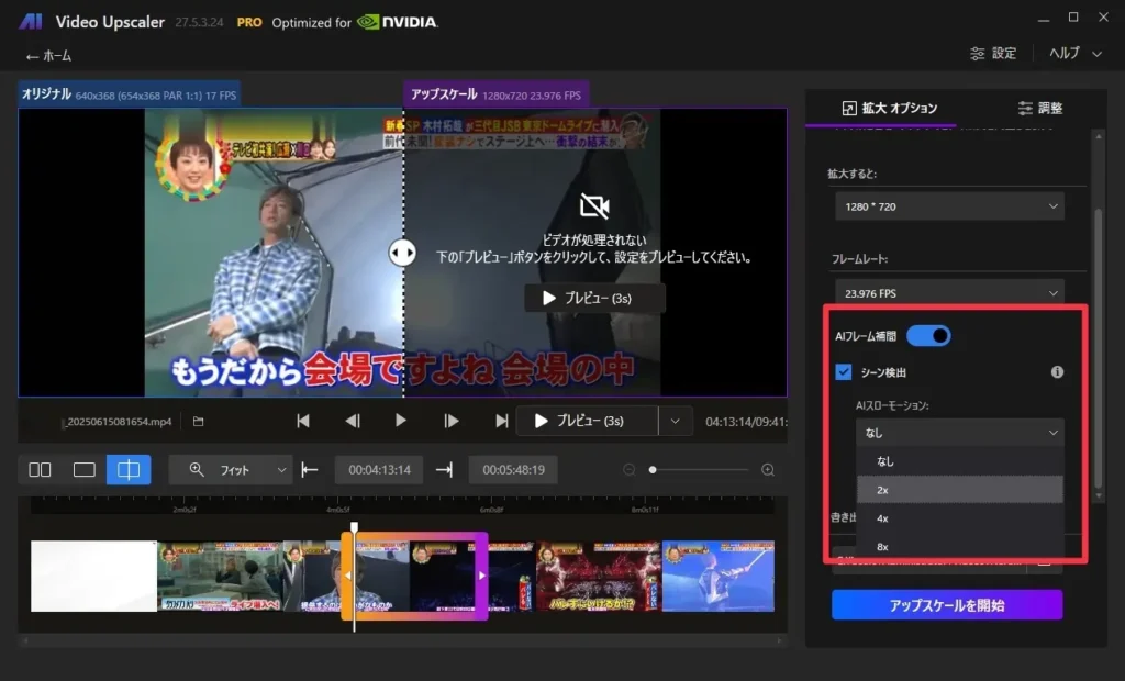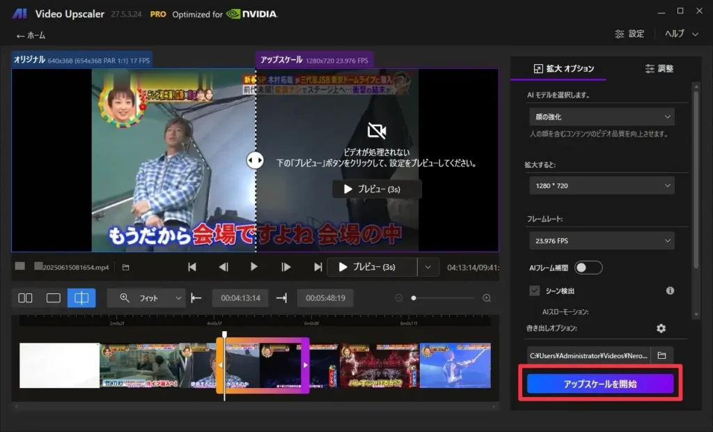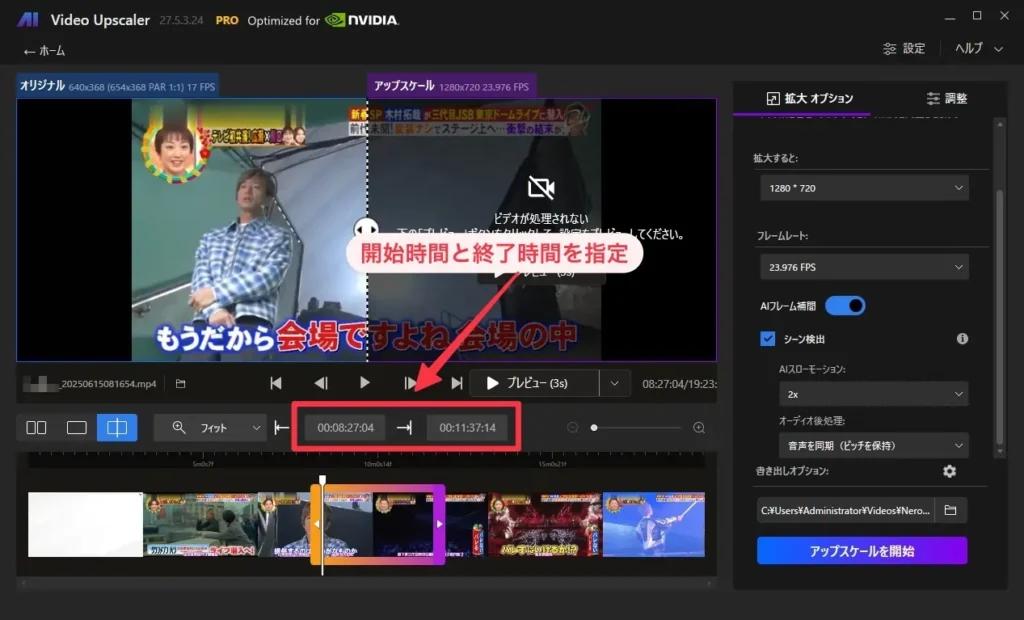 ビデオの全部ではなく、事前で動画をカットしなくても、任意の区間だけを選択して、アップスケール可能です。これは、複数の素材を効率的にアップスケーリングすることができます。
