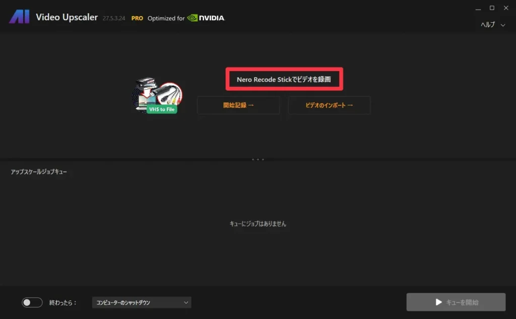 また、Nero AI Video Upscalerで、Nero Recode Stickや、その他のビデオ入力デバイスを使って、映像を直接録画することが可能です。