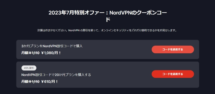 これは、2023年7月のNordVPN(ノードVPN)クーポン・クーポンコードです。