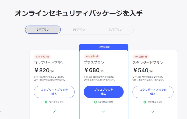 | 3か月プラン | ¥1,080/月合わせる¥3,240 | 30%オフ | secureinternet |