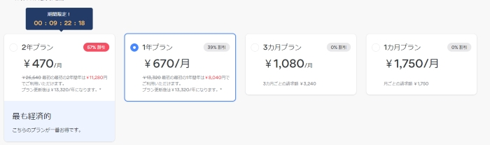 | スタンダードプラン | ¥670/月 | 39%割引 | |