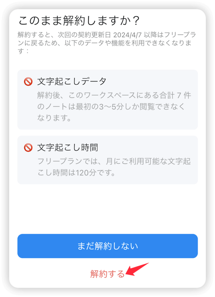 - アプリを削除&退会してもNottaの有料プランを解約できませんので、上記の手順に従って解約してください。
