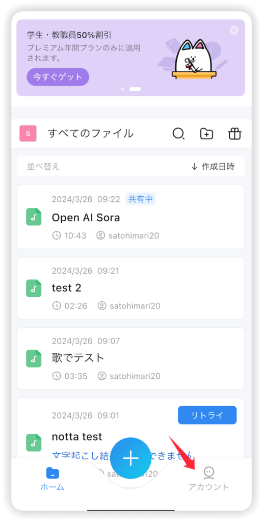 Step 1. お使いのiOSデバイスでNottaアプリを開き、アカウントをタップします。
