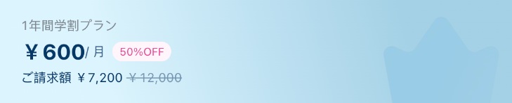 Nottaでは学生と教職員に学割を提供しています。 学生、教職員は、プレミアム年間プラン(元の価格:14,400円)を購入すると50%割引を受けられます(割引価格:7,200円)。 すべての個人機能は購入後に利用できます。 学割を利用するには、支払い時にプロモーションコードを入力してください。