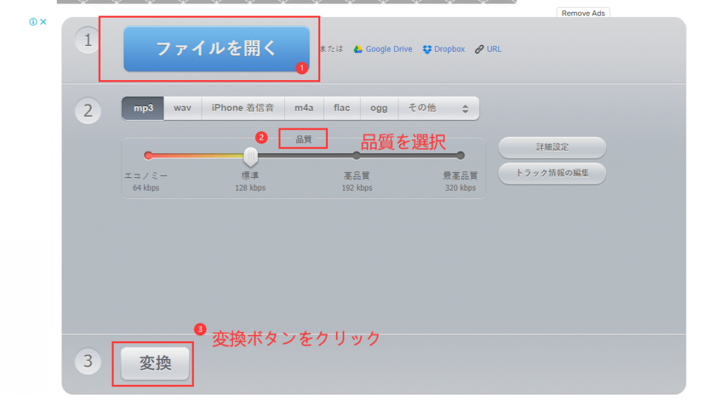 - Google Drive、Dropbox、URLまたダウンロードされたMP4ファイルすべてもMP3に変換できる