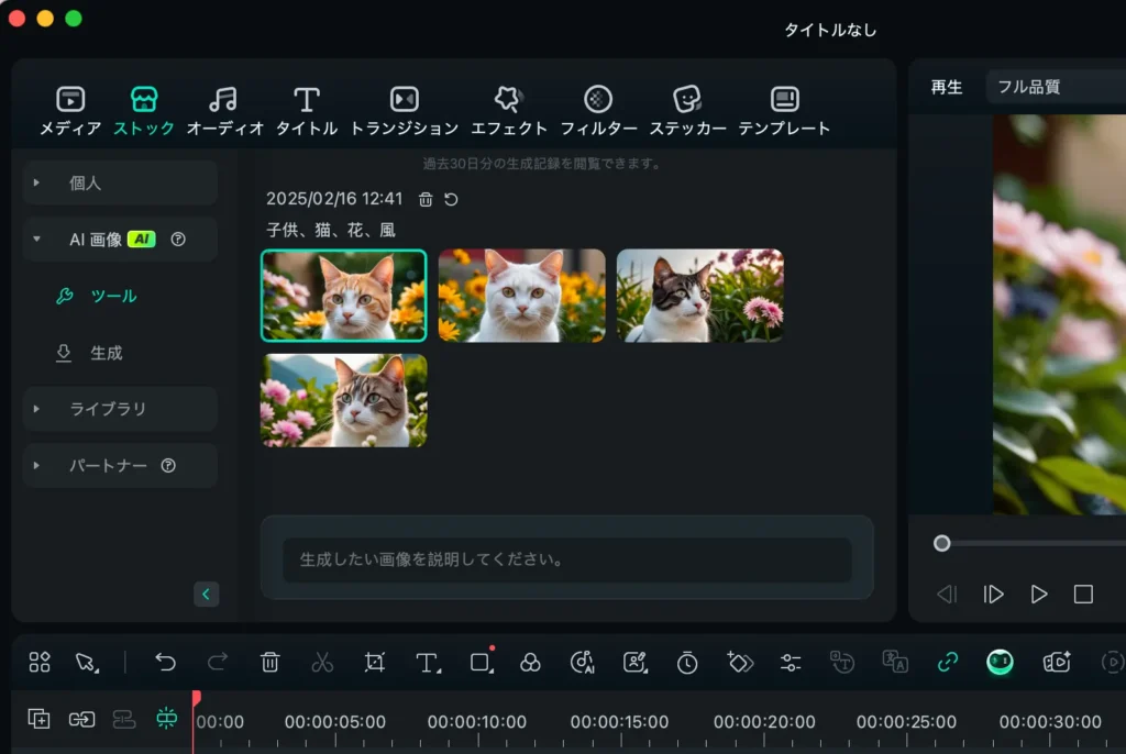 A. 「Filmora(フィモーラ)」には、著作権フリーの素材や有料の素材が用意されています。フィルムストックの素材は利用規約の範囲内で世界中で使用することができます。