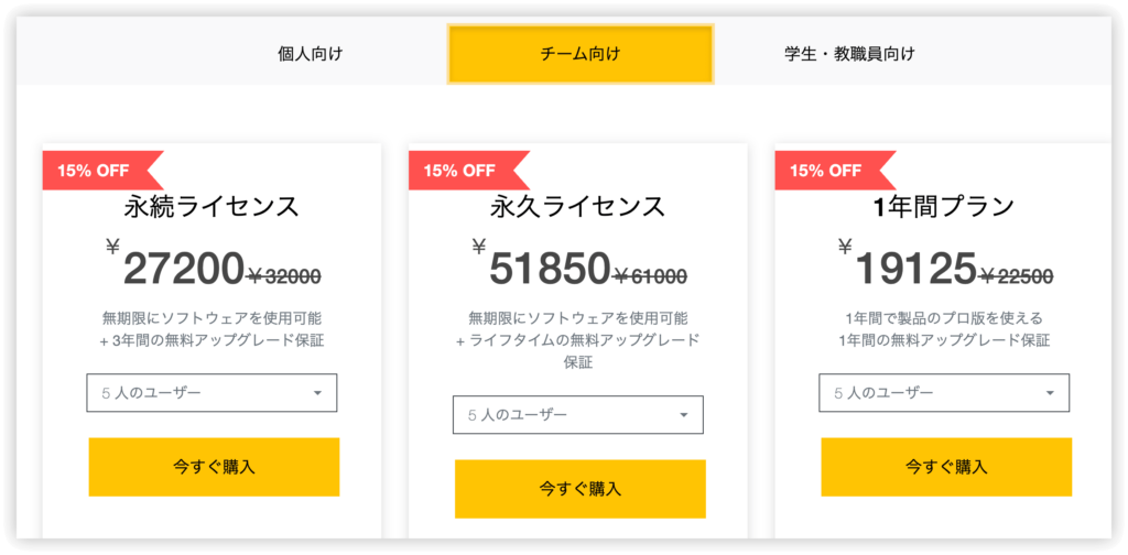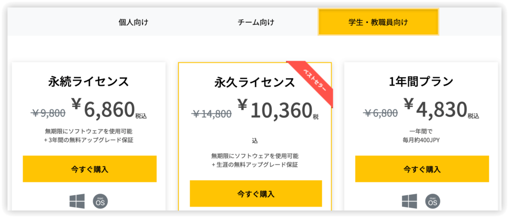 | 永久ライセンス | 14,800 | 10,360 | 30% |