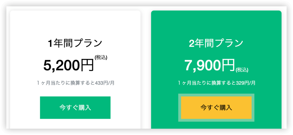 | 2年間プラン | 17,600 | 14,900(621円/月) | 約15% |