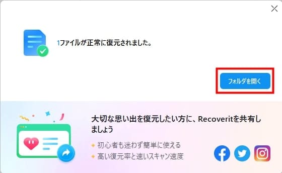以上はWondershare Recoveritの無料版の使い方と有料版との違いです。もし誤操作でパソコン内のデータが消しましたら、ぜひ無料版をダウンロードして使って復元してみてください。最後まで読んでありがとうございます。