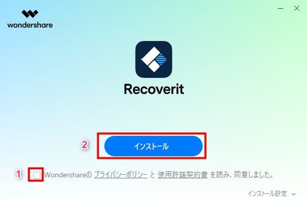 Step 3:インストール画面でプライバシーポリシーと使用許諾契約書を同意して「インストール」ボタンをクリックします。
