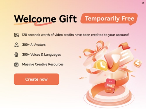 Wondershare Virboを新規登録する前に、ビデオテンプレートやAIアバターなどのリソースを無料で使用できます。ただし、無料登録後に、 2 分間のWondershare Virboビデオクレジットを取得でき、無料でAi動画を作成できます。